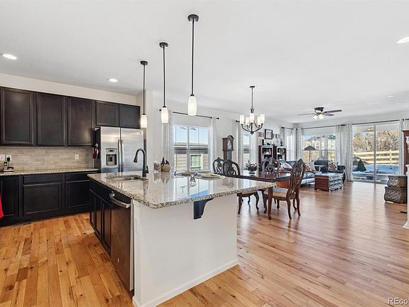 Don't miss out on this rare opportunity to purchase a ranch home backing to stunning open space! Situated on a quiet street within the Heckenforf neighborhood. You couldn't ask for a more convenient location near Rhyolite Park, Quarry Mesa Open Space, and yet just a short drive to shopping and Historic Downtown Castle Rock. Easy one level living with all 3 bedrooms on the main floor plus an office or living room. 9ft ceilings throughout and real wood floors. You will love the abundant amount of kitchen storage, 42" cabinets, walk-in pantry, massive kitchen island, granite counters, and all stainless steel appliances stay with the home. This home is laid out in a way that is perfect for entertaining, with the kitchen that is open to the living room which leads to the covered back patio where you can entertain, and take in the serenity of the stunning Colorado landscape.