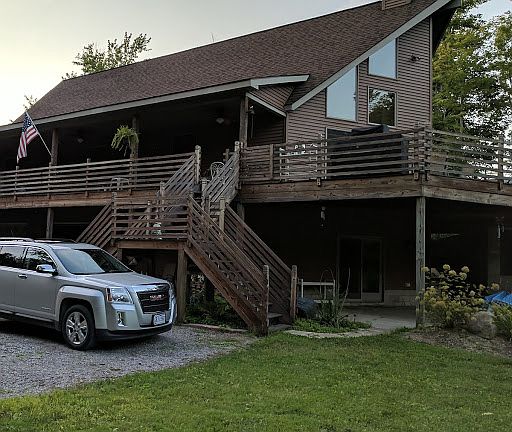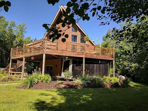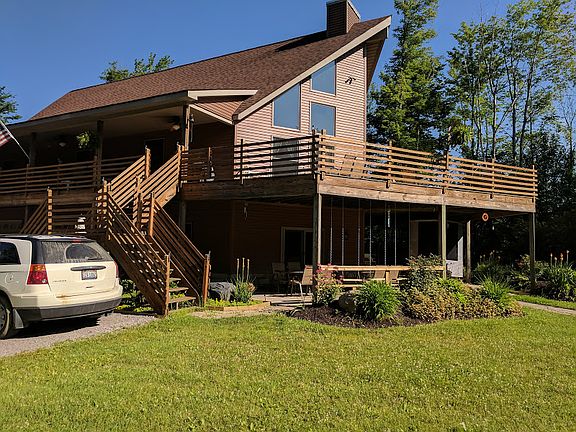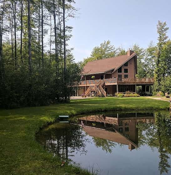 This stunning, over-engineered home has live wood beams throughout with a 26' ceiling that features a fireplace overlooking a .5 acre pond. This home has 2 master suites with walk-in closets, oversized jet bath tubs and walk-in showers. The top master suite has its own deck access. The wrap-around porch is capable of holding a hot tub with a gas line ready for hook-up. The loft has a perfect view to watch the natural wildlife and overlooks the pond. The house has zoned heating and cooling. The Amish built cabinets and woodworking is throughout the house. The property has a storage building to hold a tractor and yard equipment, and a chicken coop that has attached fence, solar electric and heat, plus a chicken run area. Collect eggs with a drop down door access panel and store your feed and bedding in the middle of the building for easy access. The property has a hunting condo on the back SE corner of the property that can be used as a tree house for kids.