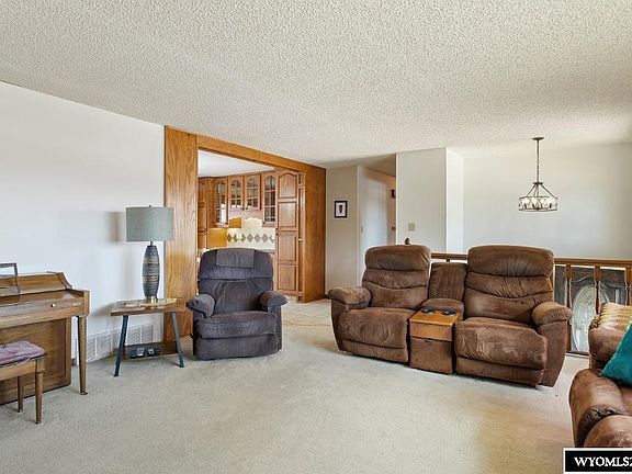 Beautiful views and open spaces. Panoramic view of Casper Mountain from the living room and unobstructed back yard views gives this home the Wyoming beauty we all look for. The recently updated kitchen offers heated tile flooring, under and below counter lighting, beautiful overhead lighting, rich solid wood cabinets, tiled counters and back splash, 3 upper floor bedrooms and 2 baths plus lower level bath. Garden level family room with wood burning fireplace. Trane furnace, A/C and water softener.
