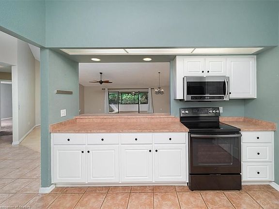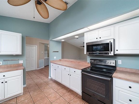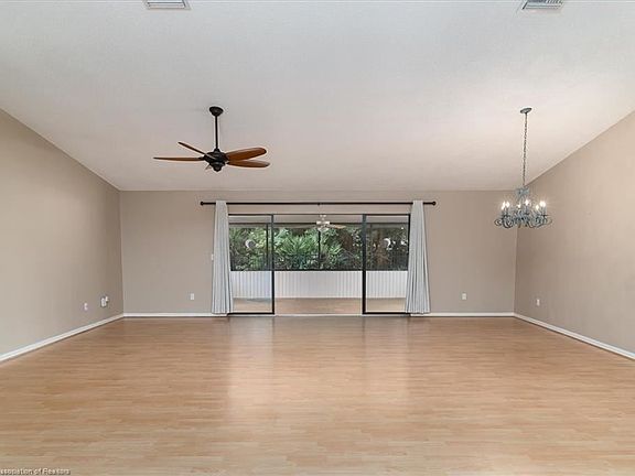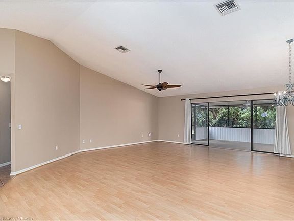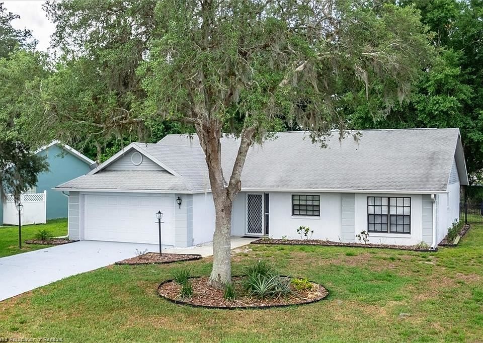 This lovely 3BR/2BA/2CAR garage home may be just what you're looking for! The open floor plan features a huge great room with vaulted ceiling and wood laminate flooring opening to a screened lanai. The kitchen boasts SS appliances, ample cabinetry, counter seating and a pass-through to the great room, so the chef in the family can enjoy all the activities too! The spacious owners suite is large enough for a sitting area to enjoy your favorite book, plus it has a walk-in closet. The 12'x20' lanai overlooks the fenced backyard, perfect for keeping your 4 legged family members safe. You'll love the peaceful view of the woods in the common area beyond the fence too; and the outdoor patio is perfect for grilling and entertaining. This home is situated on a nice corner lot and also features a 2021 A/C, newer hot water heater and NEW ROOF COMING SOON!