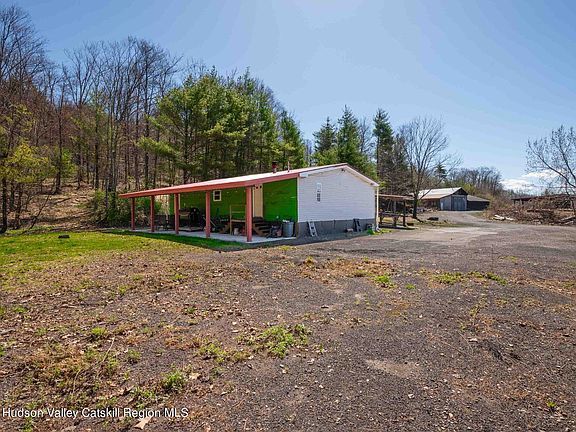 **Unique 8-Acre Property with Versatile Workspaces** Flexible 8-acre property, previously utilized for parking excavation equipment and hosting a sawmill. This residential-zoned property offers an array of opportunities, making it a rare find in the market. It features a spacious three-bay ''barn'' totaling 3852 square feet, complete with water and heating facilities. Perfect for a wide range of home business activities, from similar truck and equipment parking to installation artists seeking a vast creative space. An additional 98'x49' covered shed with poured slab was the previous sawmill. With its unique layout and infrastructure, this property caters to both living and working needs. Embrace the convenience of seamlessly blending your personal and professional life in one location. The 1188 square foot manufactured home features 3 bedroom and two full baths and was fully remodeled in 2016. New roof in 2015. Septic pumped in 2023. Property has subdivision potential.. Buyer responsible for coordinating with town the Special Use Permit if needed. Set back and above Route 28- cannot be seen from road. Beautiful views of the surrounding mountains. Easy access to Ashokan Rail Trail, nature trails and ski slopes, trout fishing, water activities, groceries and numerous restaurants.