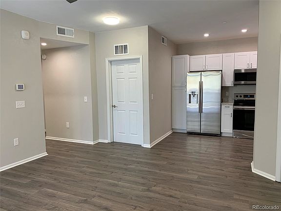 Fantastic main floor condo just 1/3 of a mile from the Dayton train station and 1/2 mile from the Hampden bus route and shopping. Brand new furnace just installed. Located in award winning Cherry Creek High School boundaries, this is a spacious and open floor plan with all new appliances and flooring, two bedrooms (one is non-conforming and would make a great office or small extra bedroom), and new kitchen with new stainless appliances, granite countertops, and ample storage. The patio features two large storage closets, perfect for storing bikes, skis, etc. The location is prime - right across from Cherry Creek Reservoir with biking/walking trails, beaches, and boating - as well as being a 5 minute walk from your front door to the Dayton train. This condo could easily be a car free living opportunity if desired.