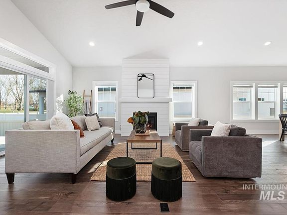 Charming home in the heart of Meridian with no rear neighbors. The entry is private and inviting in this single level home with vaulted ceilings and a great room made for entertaining complete with wine bar. Their are quartz counters throughout including the appliance station in the walk in pantry. There is plenty of storage in this home including cabinets on both sided of the oversized kitchen, closets, and in the garage. Beautiful custom cabinets with soft close doors and drawers in addition to shiplap and trim accents. The large master suite includes a tiled walk-in shower, dual vanities, and walk-in closet. Private covered patio with open space behind leading to a walking path, stream, and park. The HOA covers front/back landscaping (blowouts, mowing, weeding, trimming).
