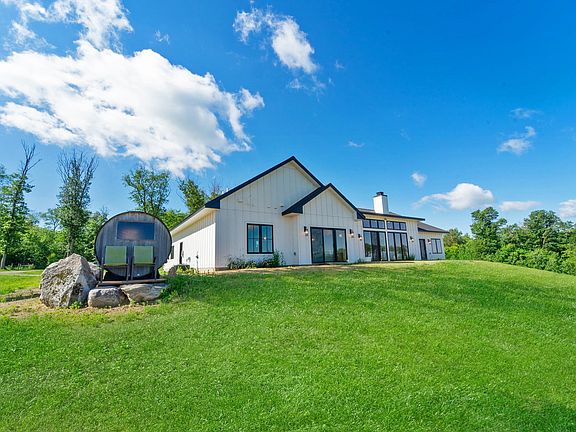 Straight out of HGTV dream home this incredible home is on a private 80+ Acre estate overlooking wooded serenity with trails & ponds - a breathtaking view! Inside the custom newly built home is light & airy throughout with plenty of storage featuring one-level living at it's finest! Floor to ceiling windows, 12' ceilings in the main living space, a gorgeous wood fireplace, future wine cellar off dining room, massive center island in the kitchen featuring hidden built-in fridge & dishwasher plus stunning hood over the range/oven for a focal point. Attention to detail in every choice from the lighting to the woodwork, excellent craftsmanship and decor/design is noticeable. Cubbies off the oversized attached garage for convenience plus large laundry room near primary bedroom suite that will leave you speechless! 3 additional bedrooms, a spacious bathroom and bonus sun/play room on the other wing of the house will be appreciated along with many extras such as walk-in pantry, barrel sauna & more! Located near Star Lake public access to enjoy swimming & fishing on those hot days!