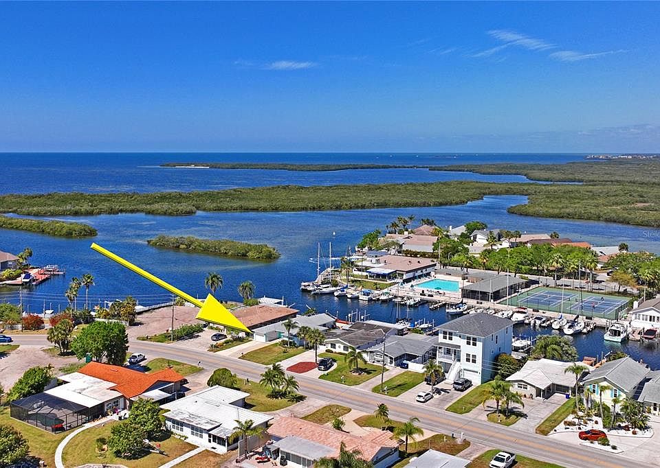 Location, location, location! Have you been dreaming of your own waterfront home with beautiful water views, an open floor plan and quick, immediate, deep water Gulf access? Welcome home to this gorgeous two-bedroom plus office/den, two bathrooms, 1,794 sq.ft home with a 1 car garage in the desirable Gulf Harbors community right on the North Channel. A straight shot to the open Gulf and all it has to offer! This property features ceramic tile floors through-out, updated bathrooms, a large screened-in lanai that wraps the back of the house, a wood dock and boat lift (never used by the current owners; weight capacity unknown). As you walk into the front door you are greeted with the open concept living spaces and a view straight to the sparkling Gulf waters. The kitchen features newer stainless-steel appliances and a breakfast bar which opens to the great room with high ceilings, and the dining room that includes a stunning China cabinet- perfect for a built-in bar! The massive great room features vaulted ceilings and tons of natural light that floods in from all the windows and sliding glass door! Right off the great room sits a cozy office nook with its own door onto the lanai, the perfect spot for remote workers or a quiet spot to read. You’ll love the flexibility of the unique floorplan; there are so many ways you can make it your own. And, an indoor laundry right off the kitchen, with stackable washer/dryer, utility sink and floating shelving for storage. Improvements include new roof 2013, 2 A/C units, A/C one new including new ducts in 2022, new windows front of house and more. This property is great for a forever or destination home, minutes from the open water, either way this home will give you the dream life on the Gulf! Membership to the exclusive Gulf Harbors Beach club is available for only $180.00 a year. Come check out this property before someone else calls it home!