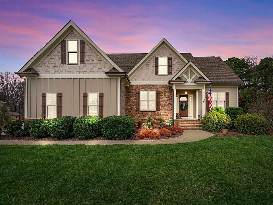 Sitting on almost 1 acre lot, this custom built ranch style home has many beautiful features. As you enter, the heart of the home unfolds in an open-concept living space. Every detail of home has been thoughtfully considered, from coffered ceiling in dining room to the rich hardwood floors that lead the way to updated gourmet kitchen with quartz countertops and upgraded stainless steel appliances, including double wall ovens. The owner's suite features a trey ceiling and adjoins an updated bathroom. Two additional bedrooms on main level share an updated bathroom. The second floor offers a guest room, bonus room and full bathroom. 2 walk-in storage areas allow for ample storage space. A row of windows on the back of the home gives you view of the expansive backyard with landscape lighting. The home also offers a water filtration system. Sit on the screened porch or expanded patio. Ideal for gatherings and relaxation!