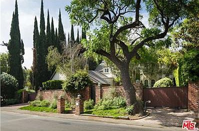 Gated Country French Tennis Court Estate w/ circular drive in sought after Longridge Estates. The gracious formal 2-story entry leads to step down living w/ fireplace & generous formal dining room. A true chef's eat-in kitchen offers top of the line appliances w/ center island looking to the most amazing Great Room w/ a spectacular vaulted wood beamed ceiling & warm fireplace. A home office, maids/guest & powder room complete the 1st floor. The sweeping staircase leads to a generous master w/ fp, sitting area & spa style bath w/ covered veranda overlooking lush grounds as well as 3 additional family bedrooms + 2 baths. Step out to park like grounds w/ vintage brick trimmed pool, waterfall spa & large grassy play area. The appx ~800 sq. ft. full Guest House w/ soaring ceiling, fireplace & private patio overlook a Championship N/S lighted tennis court w/ separate entry off the adjacent street. Wonderful opportunity to own this one of a kind private oasis set among towering trees.