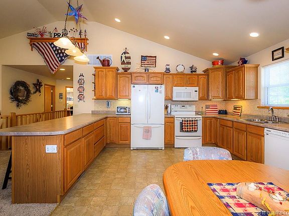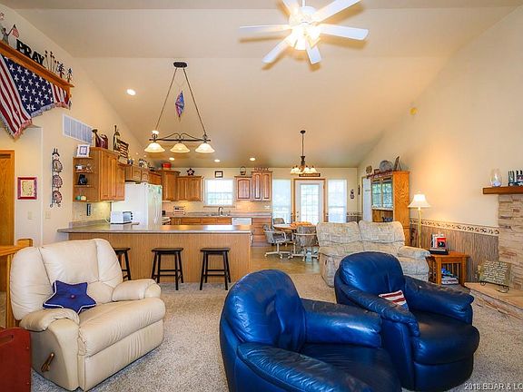 Every family member will love something about this large, move-in ready property with great road access, 8 minutes to Camdenton schools, in a quiet rural neighborhood. The thoughtful design includes a spacious kitchen with natural light and abundant storage, enormous walk-in pantry, delightful laundry room with a chute from upstairs to the washer. The 20x48 finished, heated shop has a covered area for large RV storage. The 4 large BR (one's been converted to a beautiful home office), 3 full BA, 2 enormous great room spaces, one on each floor, invites everyone to gather & play either together or separately. The walk-out lower level leads to an impressive outdoor living area with outdoor kitchen and above ground pool, currently called The Staycation Resort. The nearly level yard (just under an acre) has room for the kids to play lawn games and set up all kinds of kid friendly outdoor entertainment. An engineered above-ground tornado shelter keeps the family safe in severe weather.