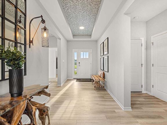 Welcome to the highly desired Iron Gate community! Experience luxury living in the exquisite Sienna model, lot 91, a single-level home offering 1866 square feet of pure indulgence. Be captivated by the open concept floor plan that seamlessly blends style and functionality. The well-appointed kitchen boasts a spacious island, pantry, sleek quartz countertops, and top-of-the-line stainless steel GE appliances. Prepare culinary delights while enjoying the company of friends in the adjacent living and dining areas. Retreat to the expansive owner's suite, your personal sanctuary within the home. This haven features a generous walk-in closet and an en-suite bathroom that rivals a spa. Pamper yourself in the walk-in shower with its stylish glass door enclosure, creating a serene and rejuvenating atmosphere. Stay connected and effortlessly manage your home's comfort with the Honeywell smart thermostat. Also includes a full landscaping package, Passive radon system and a 10-year structural warranty. *Photo Of Model*