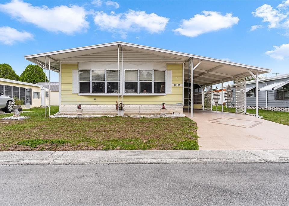 Welcome to this 2 bed 2 bath doublewide, 1252 sq ft home in the 55+ community of Shady Oaks. This super cute home comes FURNISHED so you can move right in. Large open Florida Room w/ lots of natural light. Eat in kitchen plus a separate formal dining room w/ plenty of cabinetry and shelving for your dinnerware or fine china. Nice open floorplan with an extensive living area gives you plenty of room to hang out and enjoy life. There are 2 nice size bedrooms and 2 baths...one w/ double sinks. Also a shower bar for safety. Both bedrooms have walk in closets for plenty of storage.Ceiling fans throughout. Outside you'll drive up to your specialty paved driveway with a substantial covered carport area as well as a screened porch for relaxing in the shade. Low HOA fees of $300 annually gives you a clubhouse, pool, shuffleboard and plenty of opportunities to socialize with their regular community events. You own the land, so no lot rent. Centrally located and convenient to shopping, restaurants, medical and more. Make this your Florida Lifestyle.