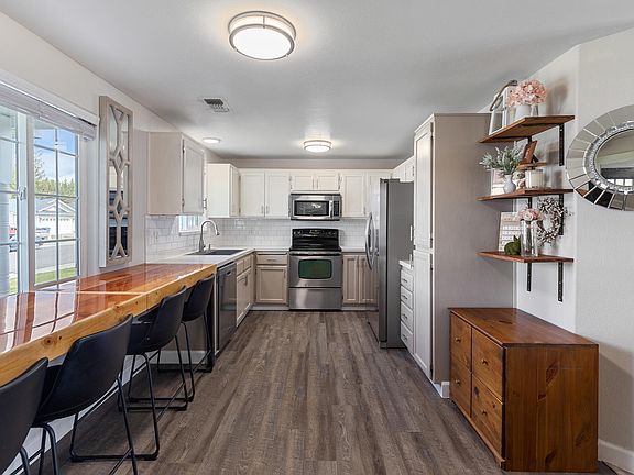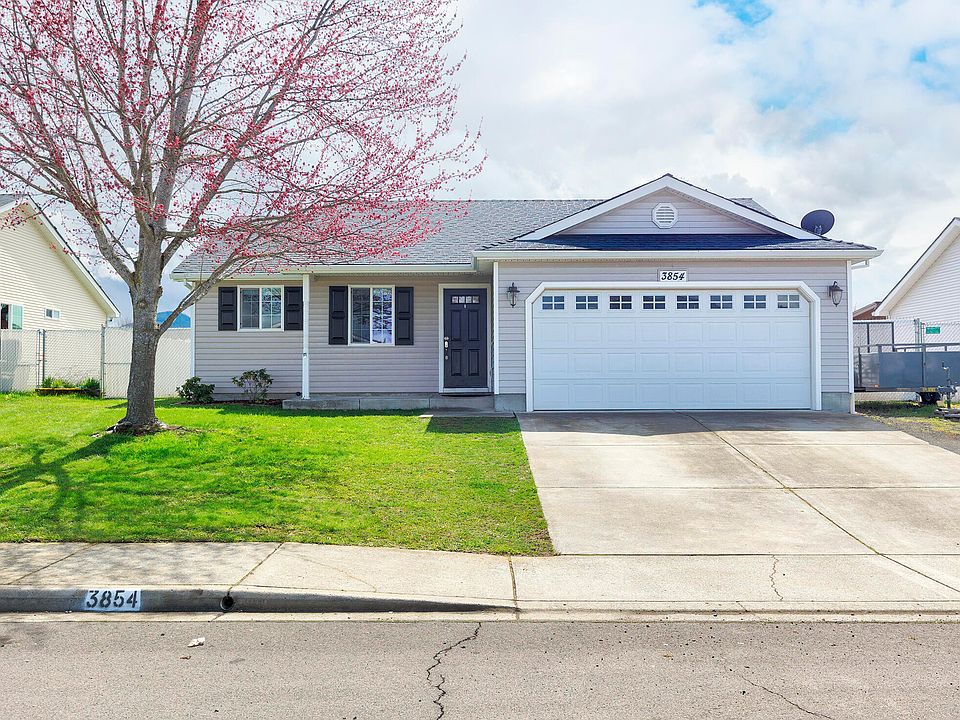 This is it! Modern updated 3 bedroom 2 bathroom home with split bedroom floor-plan w/ laminate flooring throughout most of home. Featuring a spacious fully fenced backyard with shop, access for small to medium RV parking w/ water & electrical hookups. Covered entry greets you into a beautifully renovated kitchen w/ quartz counters, tile back splash, deep sink, stainless steel appliances & custom built detachable kitchen table adding additional counter space or eating area. Living room with vaulted ceilings w/ fan & french doors leading to your back patio great for entertaining. Primary bedroom with walk-in closet, en-suite bathroom w/ tile floors & walk-in shower. Two additional bedrooms & guest bath set off living room. Bedrooms including custom built-in storage with dresser & shoe shelves, Guest bathroom w/ granite counter, tile floors & tub/shower. All this w/ easy access to Hwy-62 & close proximity to Medford, shopping, restaurants, medical & more. Call to schedule your tour today!