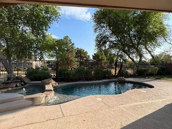 Welcome home! Spacious 3 bedroom 2 bath home. Enclosed, private office/ den. Separate living and dining area, eat-in kitchen and family room. Interior paint job throughout the entire home, new flooring throughout, new quartz countertops in the kitchen and bathrooms. Gorgeous master suite with tall ceilings, private access to the covered patio, bay window overlooking the beautiful pool and spa, large master bath, with separate tub and shower, double-sink vanity, large walk-in closet with shelving units. 2-car garage, water filtration system. Outdoor built-in grill perfect for entertaining. Backyard backs to a beautiful greenbelt area. Mature landscaping, front and back grass and trees, Walking distance to Gilbert Regional Park, Coronado Elementary and 2 neighborhood parks. Don't miss it!