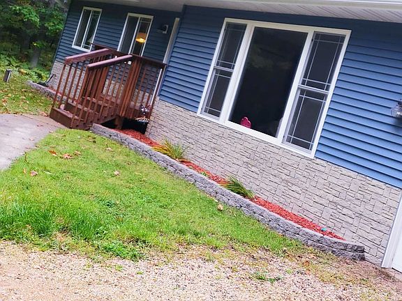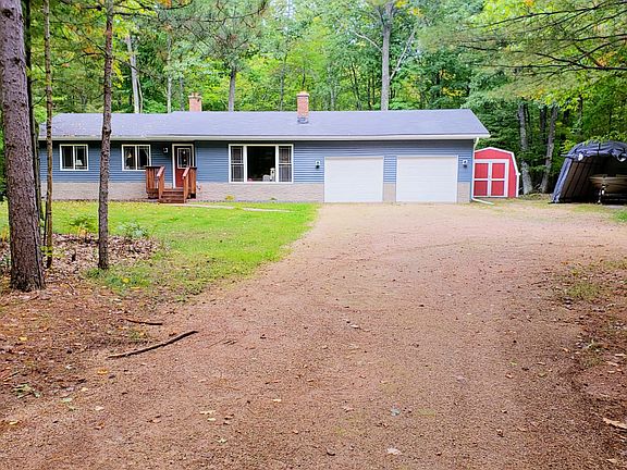 This 3 bedroom 2 bathroom home with a 2-car attached garage is situated on 1.52 acres of wooded privacy and is centrally located between Eagle River and Three Lakes. It is a 5-minute drive to downtown Eagle River and the grocery store and it is located 1/10th of a mile from the ATV trail and 1.5 miles from the snowmobile trail. The house features maintenance-free vinyl siding, a beautiful picture window and wood fireplace in the living room, a master bedroom with an attached bathroom, a wooden sundeck in the backyard, and a full basement which could be finished for more space. The garage features access to the outside dog kennel and an additional entrance to the basement so you won't have to track mud the in house. The property also features central air, high-speed internet and natural gas. See it today before it is gone!