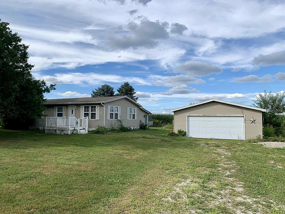 Looking for a home in the Country with a Peaceful Setting at an affordable price? Nice 2 Bedroom 2 full Bath Home with Large 2 car detached garage on nearly an acre in the country. Nice front Deck to enjoy. Could be a 3 bedroom home as a wall was removed between 2 bedrooms. Enclosed back porch has a storm shelter. Back Porch roof needs replaced. Being sold "as-is"