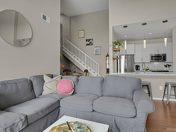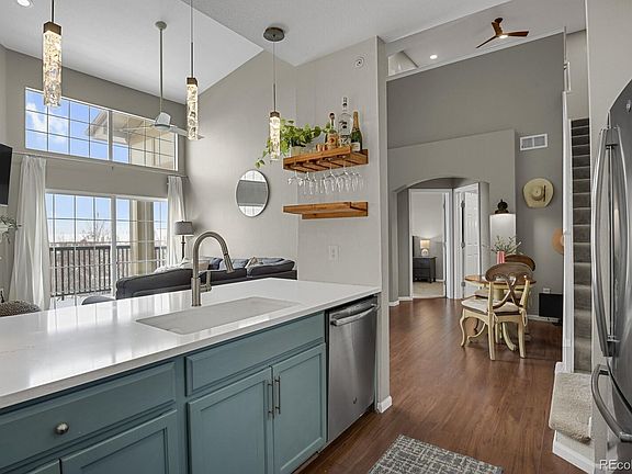 Stunning top floor condo with modern finishes and floor to ceiling windows! This beautifully updated unit has 1 bedroom and 1 bathroom PLUS a Loft on the 2nd floor that is perfect for an office, TV/game room, or a 2nd bedroom. The living room has vaulted 16’ ceilings, a gorgeous gas fireplace and sliding glass door to a spacious balcony. There are beautiful hardwood floors throughout the living room, kitchen and breakfast nook. The kitchen is stunning with beautiful cabinets, custom island, quartz countertops, stainless steel appliances and designer lighting. The primary bedroom is very spacious with a huge walk-in closet and another sliding glass door to the balcony. The primary bathroom has updated cabinets, a large soaking tub, and plenty of storage. The laundry closet includes a stacking washer and dryer. The balcony runs the length of the unit providing a large outdoor living space with sunset views! There is also a lockable closet off the balcony for extra storage or large equipment. You won’t find a better layout— bright and open with plenty of space and no one above you! Town Center Terrace is a highly sought after location near the DTC and Cherry Creek State Park— walking distance to the light rail, dog park and Kennedy Golf course and quick access to I-25, I-225 and downtown. The HOA amenities include an outdoor pool, fitness center, and large clubhouse. Don’t miss the chance to own this gorgeous home!