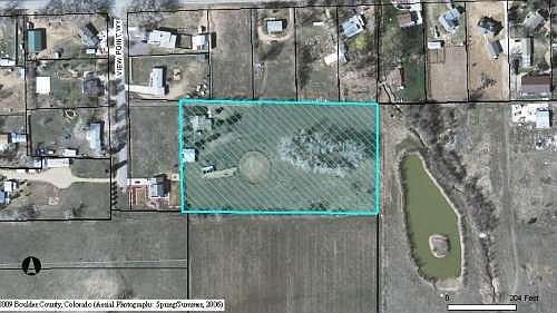 Complete info: http://viewpoint.View24Hours.com - GREAT 4.7 acres home and land set back from View Point on a short driveway. Rural land in Lafayette, in the Brownsville subdivision. BOCO confirmed as buildable lot, new build or remodel. Current house is perfectly fine to live in and cute. Lots of light. Great pasture, horses animals OK. Home is very clean and livable, could be studio or added on to. Very light inside. 3 Bedrooms, 1 bath. New carpet, paint, inside and out. You must see it to believe it. This is a wonderful opportunity. Garage is detached and approx. 25 x 28 with a shed on the side. Heated. Could be workshop. Room for cars. Could also be storage if you were remodeling Has a 3 stall run barn that will need some updating. Had a riding arena, circular pen. Fenced and x-fenced. Excellent grass, huge cottonwoods around old pond area. High water table for sub irrigation. Home will need new septic per Septic Smart. Seller's have a good price quote on septic. This is Lefthand treated water. Gas is Xcel