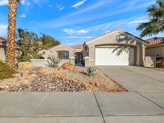 Premiere 55+ Del Webb Sun City Palm Desert--Extended Gorham model located in close proximity to the main clubhouse, restaurants, grocery stores, and all the amenities and activities Sun City has to offer. Great curb appeal with spacious walled courtyard perfect for enjoying your morning coffee and socializing with your neighbors. Inside, brand new desert-toned carpet, fresh new paint, steamed clean tile. Master and guest bedrooms are separated on the opposite side of the home for extra privacy. The kitchen has Corian counters, painted white cabinets, newer appliances, breakfast bar, and dining area with a view to theoversized backytard. Master bedroom has bay window, ensuite bath has double vanity, oversized closet. Guest bath has shower/bathtub combo. The versatile extended room can be an office/hobby/game room and has access to the spacious backyard. The extended garage has a nice hobby space built in, washer and dryer with sink, lots of storage cabnets, A/C was new in 2010. . The east facing patio has an Alumawood awning, low maintenance desert landscaping, delicious grapefruit and lemon trees. Sun City offers super low HOA dues and Specturm cable and internet, and lower electric bills with IID. Extended room is approx. 170 sq.ft. and is not included in the MLS sq. footage. Make this your dream home come true, ''Buy Where You Love to Play, Sun City Palm Desert!''