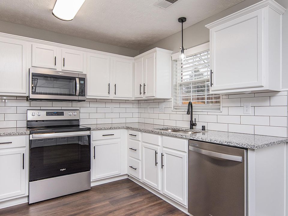 COMPLETELY REMODELED 3 Beds, 1.5 Baths, 1-Car Garage Luxury vinyl plank wood faux flooring throughout Granite countertops & tile backsplash Stainless steel appliances Matte Black Hardware & fixtures All energy saving LED lighting New vanities, toilets, tub, shower tile, and faucets in baths Levolor 2.5 inch plantation blinds All-electric heating/cooling Washer/Dryer hookups Rear patio & fenced in yard; backs to wooded area. Living Room: 11' x 14' Dining Area: 7.6' x 10.5' Primary Bedroom: 10.8' x 9.5' Back Left Bedroom: 9.4' x 9.7' Back Right Bedroom: 9.7' x 11' No Smoking No Section 8 Lawn mowing included Renter's insurance required Animals permitted on a case-by-case basis. Non-refundable $300 fee for the 1st & $150 for each additional. Monthly rent + $25/month/animal. Tenant must have rental history with animal Application required for all occupants over 18. Employment/income verification, rental history verification, and credit check. $17 Application fee.