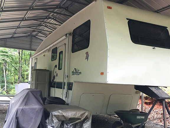 River Rafter and Fisherman dream place! 8.659 acres on paved road. Property joins U.S.A. lands and includes a 1998 wilderness mobile home, 40x22 metal parking shed, rock grill, and other buildings. 5th wheeler mobile home has two slide outs and potentially 2 bedrooms and 1 bath. Located 4 miles from Tugaloo Lake and boat ramp. Owner has a permit for a septic tank, but has not been installed.