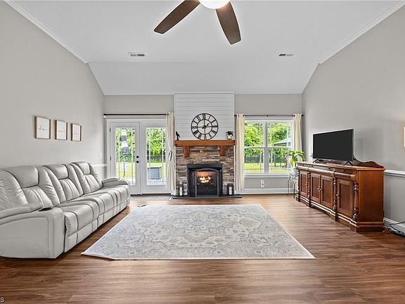 Gorgeous 2022 custom built home offers peace & quiet, privacy, views & an open floor plan! Discover this beautifully designed home on a private 7 acres with scenic views and abundant wildlife! Featuring 3 bedrooms and an office on the main floor with an open floor plan, solid surface LVP floors, granite countertops, and a custom stone fireplace. The gourmet kitchen boasts stainless steel appliances, a huge island, subway tile backsplash, and a large walk-in pantry. The large main level primary suite includes a custom tile shower and large walk-in closet. Upstairs offers a private guest suite with living area, bedroom, and full bath for guests or inlaws to have their own space while visiting. Enjoy large windows, a fenced backyard, and firepit/gazebo area. Extras include: epoxy garage floor, 12x24 powered outbuilding, custom front door, and custom trim work throughout. Easy access to Winston-Salem, Greensboro, High Point, Salisbury, Asheboro & Mocksville.