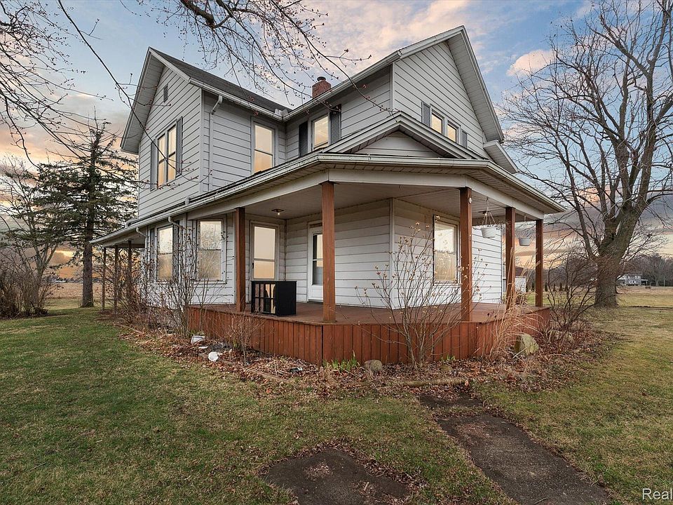 For storage needs, a Michigan basement and a sizable shed stand ready to accommodate belongings, ensuring ample space for organization. Set on an acre and a half of land, this property boasts the convenience of city water and natural gas, marrying rural serenity with modern comfort. Whether enjoying the peaceful ambiance or embracing the joys of country living, this farmhouse offers a quintessential retreat for those seeking solace and simplicity in a picturesque setting.