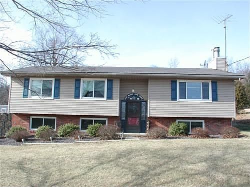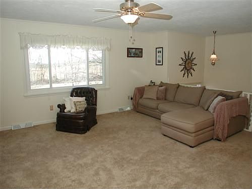 Updated home on 2.5 Acres offers the perfect setting yet is only 7-10 minutes of shopping and theatres. Updates in recent years include: HVAC Heat Pump, 1999; Garage Doors, 2000; Triple-pane windows, 2000; Bathroom flooring, 2002; Roof, 2002; Water heater, 2007; New Carpeting on main level and new vinly in kitchen, entry and basement, 2008. Today's Buyers will enjoy the large open living room that offers a stately brick fireplace with mantel for favored artwork or portraits. The kitchen offers a pantry cabinet, breakfast bar and its defined yet open design allows one to converse easily with guests in the living and dining areas. The dining room has atrium door to the deck and backyard. Three spacous bedrooms are found on the main level of the home. There are 2 full baths that serve these, one of which has laundry space and extra cabinetry within. The lower level offers a large family or recreation room complete with wood-burning stove. There is also a study area that the sellers currently use for seasonal storage. There is a half bath on the lower level too. The garage offers plenty of workspace. Included in sale: Refrigerator, range, range hood, dishwasher, disposal, pantry cabinet, fireplace glass doors, media air cleaner, humidifier, dehumidifier; workbench, pegboard and electric heater in garage.