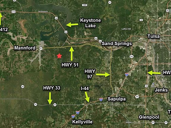 MUST SEE IN SAND SPRINGS ON 42.5 +/- ACRES WITH TWO ALL-ELECTRIC TINY HOMES AND A LARGE, FULLY STOCKED POND—ONLY 3.5 MILES FROM KEYSTONE LAKE AND 13 MILES TO DOWNTOWN TULSA. Strategically located in the countryside of Sand Springs, this remarkable property offers the perfect blend of convenience and seclusion. This 1-Bed, 1-Bath 720 square foot main residence has been updated with vinyl flooring, wood stove, and Mini Split Unit. With a nice-sized front and back porch, and a fire pit area, as well as an additional super nice storage container cabin, this property is well suited for relaxing outside while you enjoy the amazing sunsets, entertain friends and family, or fish the pond that's been fully stocked with Bass, Crappie, Blue Gill, and Catfish. The property’s prime location means you are mere minutes away from multiple access points to Keystone Lake and its breathtaking views, providing you with endless opportunities to indulge in a variety of water activities and adventures offered throughout the spring and summer. Situated less than a mile to HWY 51, 3.5 Miles to US-412/64, 8 miles to HWY 97, and 10 miles to I-44, its excellent location allows you to enjoy quick access to the professional opportunities, essential amenities, and entertainment choices of the entire Tulsa Metropolitan area. Don’t miss the chance to own this wonderful property! Schedule your showing today!