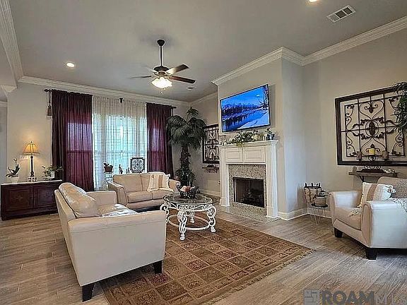 Welcome to this stunning home nestled in the Sugar Mills Plantation of Addis, boasting three bedrooms and two bathrooms, a private fenced back yard where lush, thriving plants and carefully manicured bushes create a vibrant, well-maintained landscape. The stucco and brick exterior of the house hints at the comfortable interior: wood look ceramic tile is in the kitchen, family room, bathrooms and laundry room, a built-in computer nook offers a workspace, and a convenient boot bench sits ready in the mudroom. Recessed lighting in the kitchen and living room. The master bath includes a double vanity, a large separate shower, and garden tub ideal for relaxation. The walk-in closet offers extensive storage and provides access to the utility room. Two cars fit comfortably in the oversize garage. The backyard features a shaded patio overlooking a thriving, colorful garden. Energy efficiency is a highlight of this home, which includes energy-efficient windows and roof, an extended slab foundation, high-efficiency HVAC and tankless gas water heater, central gas heating, stainless steel gas range with dishwasher, and a microwave with exterior venting. Imagine the cool smoothness of the granite countertops in the kitchen and bathrooms, paired with the rich tones of the custom “wood” cabinets surrounding the undermount sinks. The kitchen, master suite, and living area feature crown molding for an upscale feel. The Home is equipped with Kwikset locks and smoke/carbon monoxide detectors, ensuring both style and safety. The house will be equipped with two garage door openers for convenience. Hide