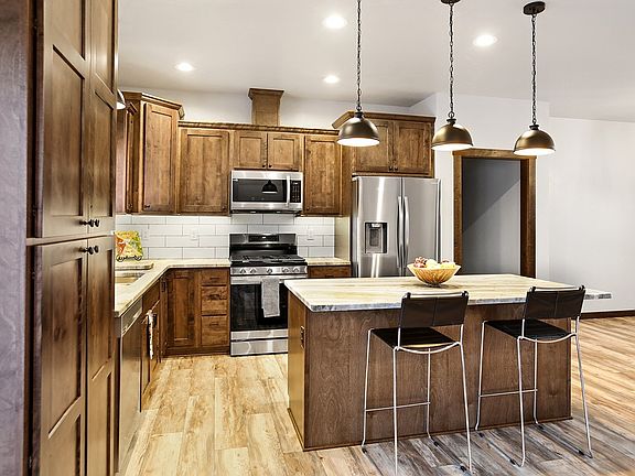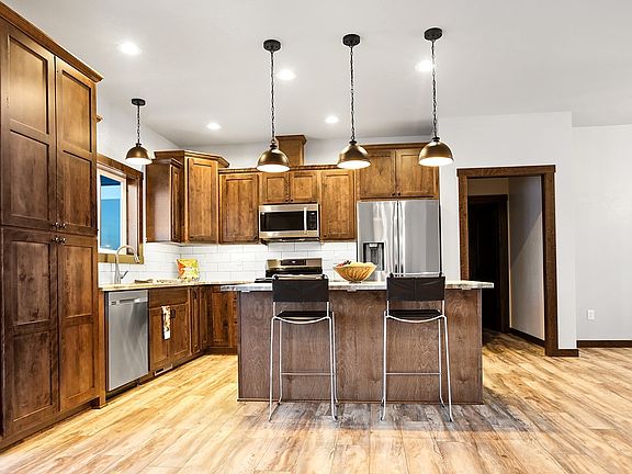Top quality new construction with 2200 sqft in a single level contemporary rancher in desirable subdivision - minutes from town. Room for all! Owner's private ensuite w/bath, tiled shower, double sink vanity, & walk-in closet. Plus an additional 3 bedrooms, 1 full and 1 half bath, all with custom closet systems throughout & additional storage space. Spacious vaulted great room with gas fireplace and room to relax. Stylish and functional kitchen w/attention to detail - granite counter tops & breakfast bar island, wood cabinetry, & spacious pantry. Hardwood doors, windows and trim throughout the home along with beautiful laminate wood flooring. Mud room entry into ideal laundry area from attached 3 car heated & finished garage. Builder's extras to include 9ft ceilings & Sound batt insulation around all the common areas.