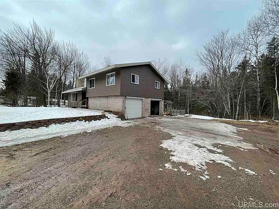 This could be a great home for the first time buyer! Main floor has a spacious living room with an high ceiling and stone wood burning fireplace. Just up a few stairs is your kitchen and dining area that looks down into the living room. Sliding glass doors take you out to the large deck with views of the surrounding woods. Three nice size bedrooms with mirrored closet doors and a full bath are all on the same floor. The main floor has potential to be whatever you'd like! Laundry area is here and what is considered a 4th bedroom. Although the new furnace and water heater are installed in this room, it could easily be converted back to a fourth bedroom. Looking for more storage? There is yet another level that is perfect for all your storage needs! You'll appreciate the huge 2 car garage and the country setting location of this house. Another bonus, the Iron Ore Heritage Trail is just down the road!
