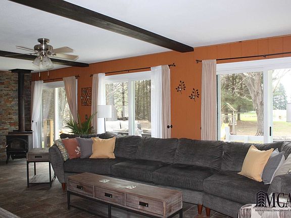 Country roads take me home Move in ready, absolutely gorgeous ranch home on 5 acres w/pond, breath taking views, very private and resort like. This home features 3 bedrooms, 2.5 baths, patio doors to deck off back, many updates, laundry on the main, possible 3 bedrooms in this 1,628 sq.ft. finished basement, storage shed w/loft, 24 x 34 pole barn, attached heated 3.5 car garage w/stunning new door, a very unique beach hut and much more! Set your appointment today!