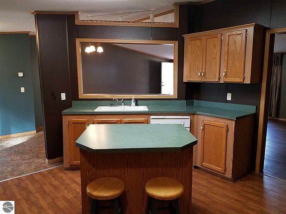 Larger 3 bed 2 bath manufactured home on a secluded 4.9 acres, large 28x40 garage that is heated and air compressor lines, covered front entrance, 2 decks, pole construction addition on back that has a woodstove vented in house, additional storage barn with covered lien to. Large master bedroom with walk in closet and master bedroom, bonfire area, treed driveway to make it private from the road, livingroom did have a pellet stove and could easily add one again.