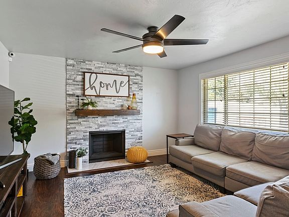Cute home close to Jordan Landing and Bangerter Hwy. Updated Kitchen with Whirlpool stainless steel appliances, new cabinets, crown molding, and granite counter tops. Updated living room with natural stone fireplace. One updated bedroom with molding and flooring. Pergo floors throughout kitchen, hall, living room, one bedroom. Basement is partially finished with a wet bar. With some TLC, it can be made your own. New siding, AC, Garage door/opener. Friendly neighbors, backyard with covered patio