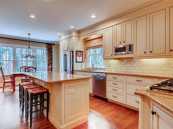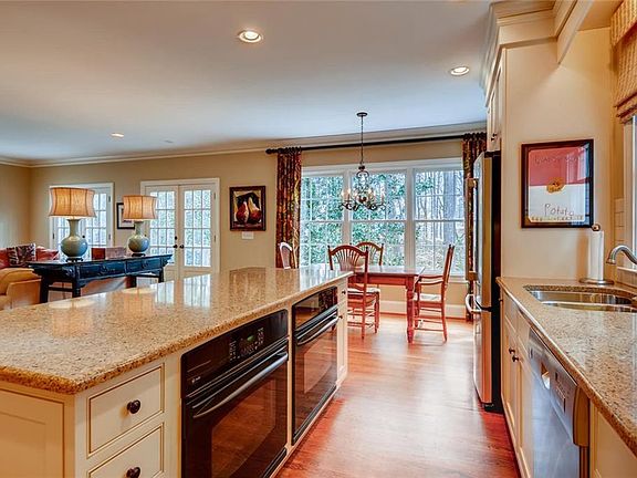 - Kitchen Features: Eat-in Kitchen, View to Family Room, Stone Counters, Kitchen Island, Breakfast Room, Cabinets White