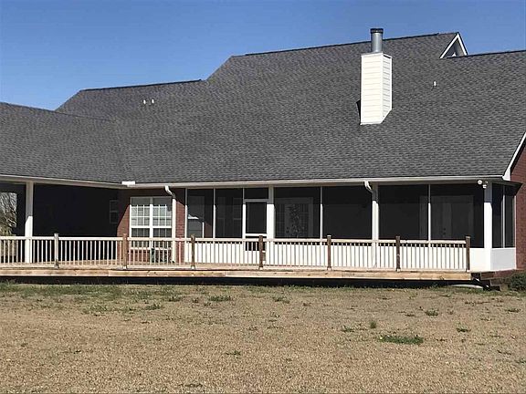 This CUSTOM home truly has it all~ drive up and notice the solider brick on the home with matching mortar. Pretty lead door on the front with decorative concrete on the front porch. Enter into the home and to the right is the formal dining area, staright ahead is the huge great room with beautiful fan, pretty floors, gas remote controlled fireplace, plant ledges. There are double doors leading to the nice screened porch with a knee wall from the great room, great room also has high ceiling. Kitchen is grand with granite countertops, undermount double sink, Jenn Air stove, built in microwave, dishwasher and a refrigerator (about 2 years old). Kitchen floors are travertine. Kitchen has a hop up bar and just off the kitchen is an eat in area. A door from the carport leads to the kitchen or half bath, or laundry room. Half bath has a toilet and mud sink. Laundry room is large and has the same beautiful cabinets as the kitchen. The Master Suite is just off the formal dining room has a pretty fan, pretty floors. Master bathroom has double vanity pretty custom cabinets, garden tub, separate shower, 2-walk in closets, toilet closet. Thru double doors off the great room you will find another bedroom/office-this room does have a window and a closet, pretty floors. Down a small hall off the great room are two good size bedrooms with carpet, pretty fans, nice size closets. Hall bath has travertine floors, nice vanity, tub/shower combo, and toilet area. Out back is a three car carport, barn, and another nice storage shed. This home is on a well for water and has 2 septic tanks one laundry one regular (out near the generator). 2 Trane HVAC units in this home-one for each side of the house. A whole house generator. Nice pond absolutely full of fish, behind the pond you might spot some deer wondering around. Pond has a well that is only turned on maybe twice a year when it is hot. Gutters on home, 50x30 Barn w 2-rolling doors & power/water, toilet & sink. TOUR today!!