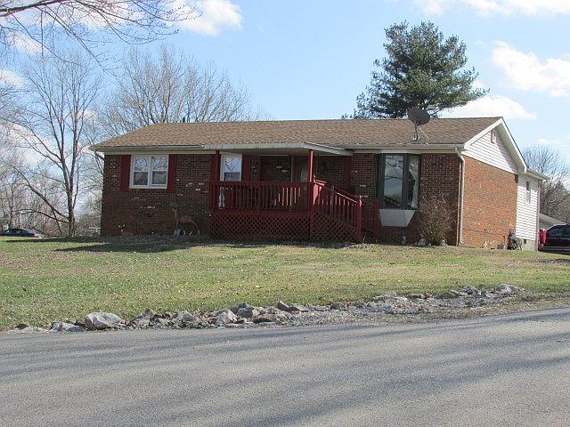 Beautiful country setting over looking lake! 3 bedrooms,1 bath brick ranch home with partial finished basement.Roof new in 2015, newer Anderson double pane windows,freshly painted, walk in shower, newer flooring. Bay window in living room over looking lake and countryside! Separate dining room with french doors that open to deck. Acreage with lake, detached 24 x 30 garage,12 x 30 leanto, carport 18 x 22. Open porch porch to watch all the turkeys and deer! Extra large detached All per seller. This home is a must see! Country living but close to shopping! Home warranty being provided at cost of $860.00 Survey under Documents.