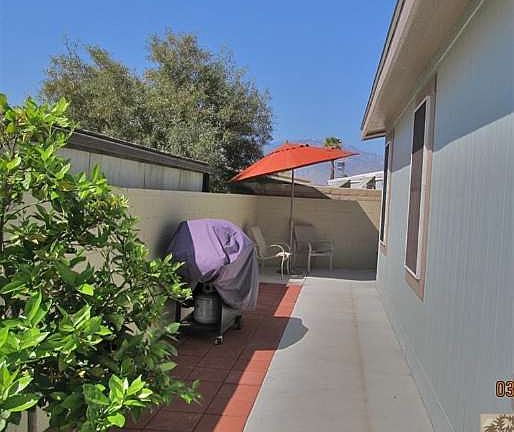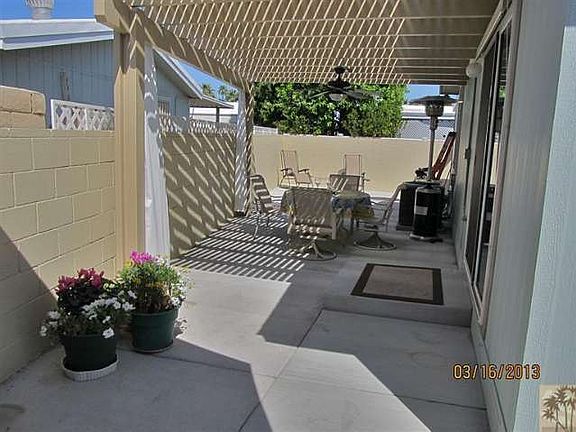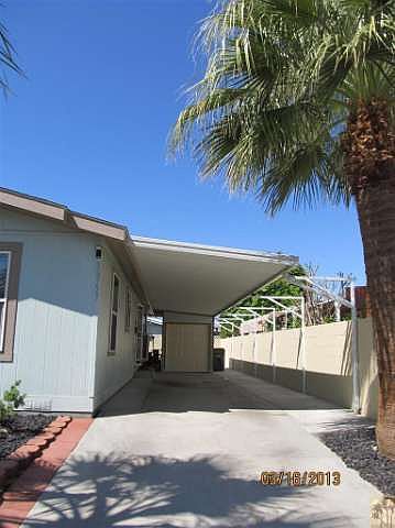 Newer 2009 Golden West custom double Energy Star Rated home,2/2 plus den/office,2x6 construction,permanent foundation, numerous upgrades,drywall,20x20 Italian glazed stoneware flooring in main areas,upgraded Shaw carpeting in bedrooms and office. Master bath has a large polished quarry tile shower with glass enclosure,double vanity sinks,upgraded GE appliances in kitchen,a large pantry & island. Outside features include a patio with gazebo style Pergola roofing with light & fan,desert landscaping, a 5 ft. privacy block wall, swamp cooler and a Guardian 3.5 Ton 13 SEER air conditioner.Palm Desert Greens,an over 55 community,with a private 18 hole golf course,3 swimming pools,tennis courts,bocci ball,indoor shuffleboard court,library,clubhouse and restaurant, has 24 hour roving security. The low HOA dues of $245/mo. includes unlimited golf for owners on title,trash pickup,cable TV,and a guard-gated entrance. A wonderful resort type community in the desert! This home is a must see