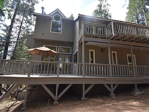 Escape to a peaceful and serene personal getaway. Nestled within the elite Ridgetop subdivision in the community of Shaver Lake, this 3 bedroom chateau is a short drive from the urban congestion and dirty smog. The immaculate kitchen is a chef s paradise and the multiple decks are sublime for any entertaining. With 3 bedrooms, all having direct access to a deck, and 2.5 baths, this lodge in the forest is perfect for any size family or couple. The living room and its dramatic floor to ceiling glass wall brings the forest inside as you enjoy your glass of wine. Located on almost 1.5 acres, this quiet oasis tucked amongst the pine trees is a city dweller s dream. The kitchen, complete with chiseled-edged granite counters and custom cabinets, has an island the size of a small country. Storage is not a problem with pull-outs in every cabinet. The massive wine refrigerator will have any sommelier gushing. The pantry and refrigerator are the ideal size for anyone expecting weeks of quarantin