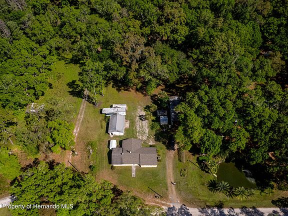 Just north of the Hillsborough River State Park & Just South of Zephyrhills, this 5 acre Family Estate is an absolute paradise. You will feel like you are in your own private preserve the moment you start to explore this property. 'Old Florida' is a term you hear people use to describe the untouched version of Florida seen by early explorers. Walking this property feels like you've transported back into time. Driving up, on your right you will see the man-made pond stocked full of fish. Just past the pond you will see the main house. At approximately 1,470 square feet, It is currently a 2 bedroom 1 bath, with an additional full bathroom in the detached 1 car garage. There is also an RV barn nearby perfect for storing campers or boats. If you are looking for additional bedrooms for an office or storage there is a 1980's mobile home on the property. Towards the back of the property you will find the outdoor pavilion that is used as an entertainment space for large family & friend gatherings. Fully set up with electric, water, fans & a projector screen perfect for events. Reach out directly to the agent for more information about the property and possible usage. Christine Hall 352.534.4704.