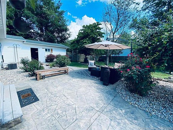 Welcome to 3856 E Plymouth Road, situated just a few miles east of Scottsburg. This home has farmhouse finishes. As you enter the one story home it features wood look flooring, natural light, living room styled with ship lap, and the added warmth of a wood burning stove, that if you choose to use it, heats the entire house. Family room is large with built in bookshelves and French doors that lead to the back fenced in yard. This is a beautiful outside living space and can accommodate large gatherings or intimate get togethers, features stamped concrete patio and a firepit to sit and relax by and you can also can grill up your favorite meal. The kitchen is complete with white cabinetry and all appliances that stay. Off the kitchen is the laundry room. This homes master suite is features a walk in closet as well as a full bathroom with separate shower and bath tub. There are 2 more bedrooms, totaling 3 bedrooms and 2 full baths. There is a detached garage.