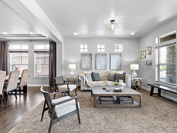 Welcome home to this beautiful 2 Story Home in The Meadows in Castle Rock. 5 Bed, 3 Bath, 4,812 Finished Square Feet + Unfinished Basement with high ceilings ready for your personal touch (functions as the perfect batting cage right now!). This home is grand from the moment you walk in. With extra wide hallways, hardwood floors. The gourmet kitchen is a chef's delight with dual ovens, granite countertops, endless cabinetry, and an island that's perfect for entertaining alongside the formal dining room and front flex space. A private & beautifully landscaped backyard big enough for hosting family and friends over for BBQ's. The main level has a bedroom and full bathroom perfect for guests or an office. The second floor has a large primary suite with a full 5 piece bathroom and massive walk-in closet. Also on the second level here are 3 additional spacious bedrooms and full bathrooms with double sinks and a loft space perfect for a kids play room or additional living space. The 3 car garage provides ample storage for all your vehicles and toys. Perfect location! Walking distance The Meadows pool, clubhouse, trails and Clear Sky elementary school. As well as Bison Park, Philip S. Miller Regional Park, and Ridgeline Open Space and Trails. 5 Min from King Soopers, Restaurants and The Outlets at Castle Rock!