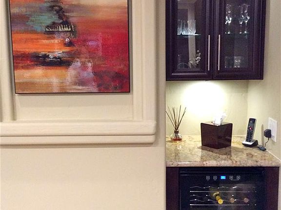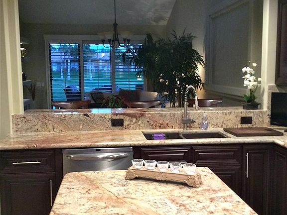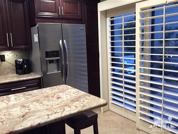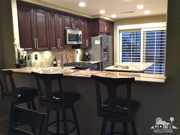 Completely remodeled in 2014. Walls removed for open kitchen/great room area. Kitchen Island with bar seating and cabinets. 24 inch diagonally set tiled floors throughout. 4 TVs, recessed lighting, built in wine cooler with glass cabinet above. Granite in kitchen and bathrooms. 3 built in wall frames for art work. Custom built wall unit with stone facade, shelving and flat screen TV in living room. Beautifully decorated, turn key furnished as per inventory list. Built in desk area with cabinet and drawers in guest bd. Shutters on all windows and sliding doors. Extended fairway patio w/desert scape on 14th hole of Challenge Course faces east. 2 closets in Master Bd. (one cedar lined). Custom showers. Ready to move in and enjoy the rest of the year!