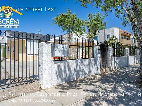 Updated four-bedroom single-story front house of a triplex located in Palmdale. The entry leads to the living room and dining area with luxury vinyl plank flooring, wood-beamed ceilings, and a sliding glass door that leads to a side patio. The kitchen features recessed lighting and ceramic tile flooring. Additionally, the kitchen appliances include a new gas stove (not pictured) and a dishwasher. Off the kitchen is a small bonus room that could be used as an office. There is a laundry closet that has full-size washer and dryer hookups. This house has three guest bedrooms, each with wood-beamed ceilings, and an updated full guest bathroom with dual sinks. The master bedroom features wood-beamed ceilings and a storage nook. The master bathroom has a walk-in shower. This home has dual-pane windows and an electronic front gate for added security. There are two assigned carport spaces located behind the building, along with a small storage space. Water is included in the rent. *No pets. Application fee of $50 per applicant. No other website can schedule appointments for our properties. * Tenants will need to obtain Renters Insurance. Proof of insurance will be needed at lease signing. DO NOT DISTURB OCCUPANTS PRIVATE PROPERTY - NO TRESPASSING Security Gate Two Assigned Parking Covered Spaces