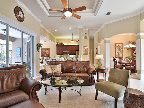 This lovely 3 bedroom, plus den , 2 ½ bath home is situated on 2/3 of an acre in a very private park like setting. This great room floor plan is loaded with upgrades. Custom crown molding throughout, coffered ceiling in dining room, newly installed wainscoting and bead board set this home apart. The spacious master bedroom looks out over the resort like pool and lanai. Two large walk in closets and a huge master bath (double walk thru shower, granite counters) complete the master suite. Your guests will have their own wing separated by a pocket door that includes two large guest rooms and a guest bath with granite counter. The kitchen has upgraded cabinetry and high end stainless steel appliances. The eating area is surrounded by an aquarium window also overlooking the lanai. The great room has a soaring ceiling that will wow your guests as soon as they enter the home. Plenty of room in the oversized 3 car garage for your cars and golfcart! The screened in lanai has plenty of room for your outdoor living and there is the convenience of a pool bathroom. The newly resurfaced salt water pool and spa are heated for year round enjoyment and are enhanced with water features. Enjoy music everywhere in this home with the whole house surround speaker system (even the bathroom and garage!) Wonderful amenities here in Twin Rivers include nature trails, playgrounds, basketball and volleyball courts and a boat ramp and fishing pier exclusively for homeowners, on the Manatee River. Very low HOA and no CDD!