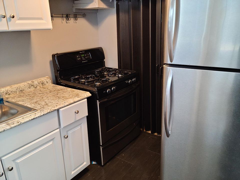 Two-bedroom townhouse, located just a few minutes from the beltway. Hardwood floors, kitchen appliances in great shape, ceiling fans, and an electric fireplace. Water included in rent.