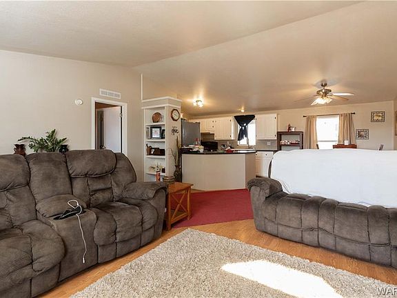 Cute all electric 2 bedroom, 2 bathroom home with a den located on 1.01 acres in Golden Sage Ranchos! This homes offers all vinyl plank floors as well as an oversized living room with an attached den. The newly remodeled kitchen offers new counter tops and back splash and a stainless steel refrigerator! The master bedroom has ample space for furniture and a walk in closet. The master bathroom has a single vanity and a tub/shower combo. Indoor laundry area with folding counter. The back yard is fully fenced and crossed fenced with 2 out buildings. All new windows throughout make this a home you will not want to miss! Call toddy for your personal showing.