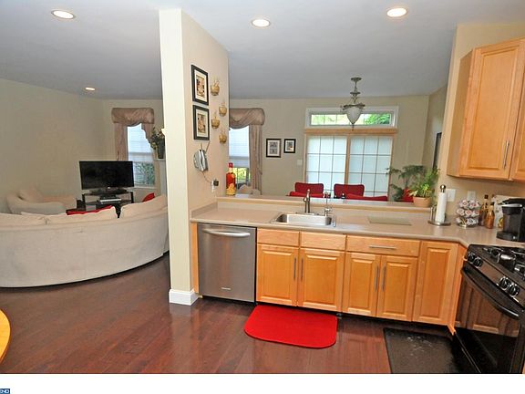 Beautiful Avery model with hardwood floors thru out the entire first floor . This 3 bedroom 2.5 bath home features 9FT ceilings and a gas fireplace flanked by windows in the great room . Kitchen with Maple cabinets and corian countertops, Stainless appliances, breakfast bar and separate eating area and out to a beautiful landscaped yard. Take the party out to the large back patio that backs to trees. You'll love the Main Bedroom with two large walk-in closet and Master Bath with two vanities and soaking tub. Two more nice sized bedrooms and a full bathroom complete the upstairs. Lots of Storage in finished basement and separate bar , entertainment area and workout and storage areas. Live an easy lifestyle since the lawn-care is done for you. Hansell Park just around the corner with walking/bike trails, park benches and more. This home has it all and is close to commuter routes to Philadelphia, NJ and NYC. Come see this pristine home that will not disappoint
