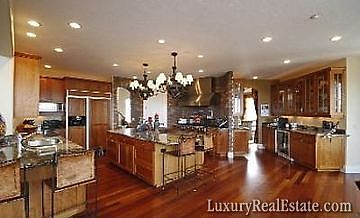 Unique and stunning French chalet estate on over five acres. Chandeliers in the kitchen, exotic granite, Viking appliances, and an oversized island with seating for six! Romeo and Juliet balcony from the master suite overlooks the great room with pride. Floor to ceiling windows in the custom stone turret, complete with six fireplaces, and a fully finished basement with custom theater room and wet-bar. Amazing attention to detail, Brazilian cherry wood floors throughout, and custom built ins make this the home you MUST see to believe.