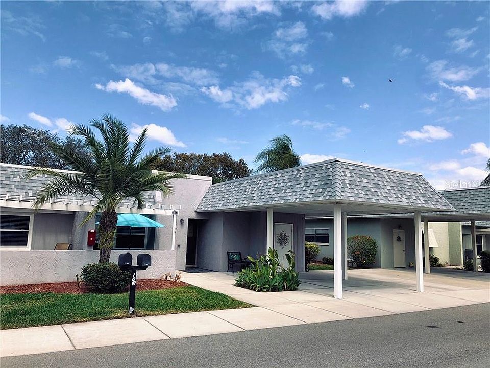 Located in the beautiful gated community of Seven Springs Golf and Country Club. If you have been waiting for the perfect unit on the golf course to come available, well here it is! A very nice, large spacious 2 Bedroom 2 Bathroom Duplex Villa with open and split floor plan, New Custom Carpet throughout and a New Water Heater. Perfect for full time or seasonal ownership. Enjoy the spectacular view of the secluded 11th green from your newly finished Lanai! This Villa also features a Private Covered Carport, Private Front Patio and an Outside Storage Room! Membership to the country club is optional which offers 2 - 18 holes courses, driving range, putting and chipping greens, pro shop, tennis courts, recently renovated swimming pools, lounge, bar and dining rooms with many social activities. HOA fee includes water, trash, sewer, basic cable, exterior insurance and maintenance. This is NOT an age restricted community.