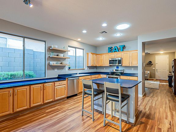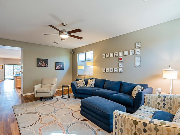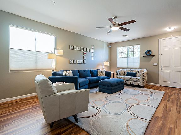 Sought after Holiday Model on a N/S facing cul-de-sac lot. Perfectly flowing layout w/ spacious living areas featuring a soothing palette & wood look vinyl flooring. New carpet in bedrooms. Kitchen has BRAND NEW SS appliances, extended counter w/extra cabinet storage & large island w/breakfast bar. The kitchen opens to the dining area, creating the perfect space for entertaining. Fridge, washer, dryer convey. Freshly painted owner's suite w/en suite bathroom is complete w/custom soft-close cabinets, vanity, mirror & lighting. Ceiling fans & upgraded lighting fixtures throughout. Backyard is very private w/an extended patio for extra seating. Garage features epoxy flooring & built-in cabinets. Soft water system. Newer A/C! (2020) Close to Anthem Amenities ,dining,shopping and I-17 access. Anthem's Community Center can be accessed with a $75 transfer fee.
